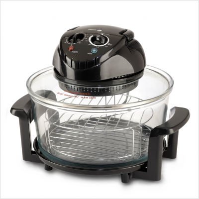 670040380 Grill, broil, bake, steam or roast while saving energy! This highly efficient and portable halogen oven does the work of many appliances in one. A powerful internal fan circulates hot air to cook food uniformly and seal in natural juices for full flavor and aroma. Features: -Cooks up to 50pct faster and is up to 75pct more energy efficient than a conventional oven. -Powerful halogen heating and convection system circulates heated air evenly around oven. -Dishwasher safe glass body with two stackable cooking racks. -Simple to use dial for timer and temperature settings. -Ideal for low-fat cooking, seals in natural moisture & flavor of foods. -Includes tongs and stainless steel extender ring (adds 5 qt. to capacity). Specifications: -Capacity: 12 Qt.. -Power Consumption: 1400 W. -ETL approved .Available at Amazon Check Price Now!